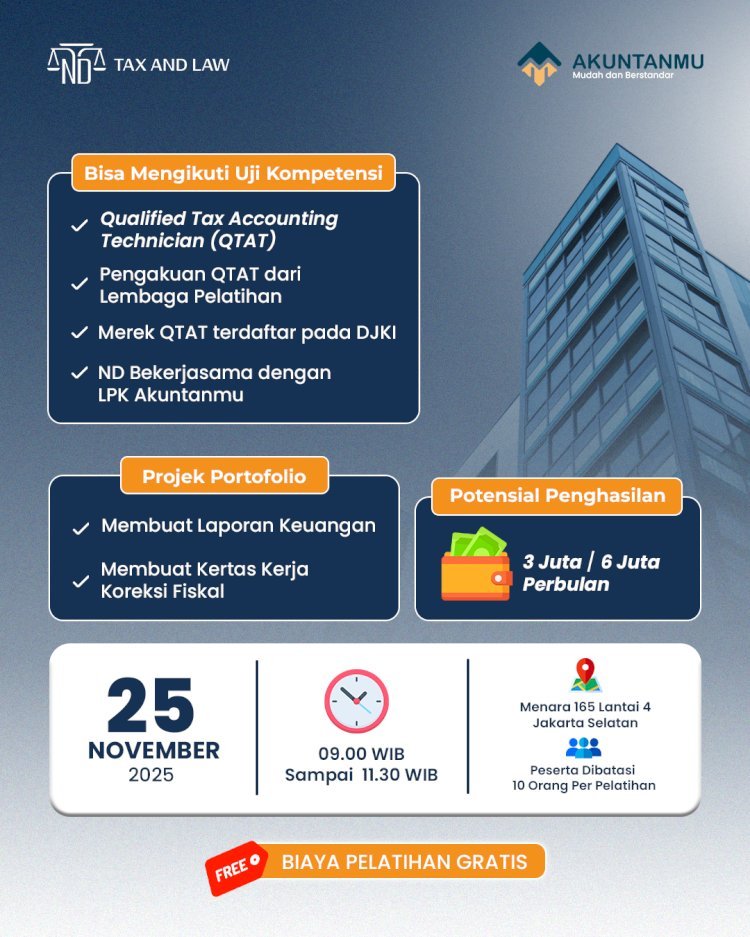 ND Tax and Law bekerjasama dengan LPK Akuntanmu untuk memastikan pelatihan dan uji kompetensi memiliki standar.